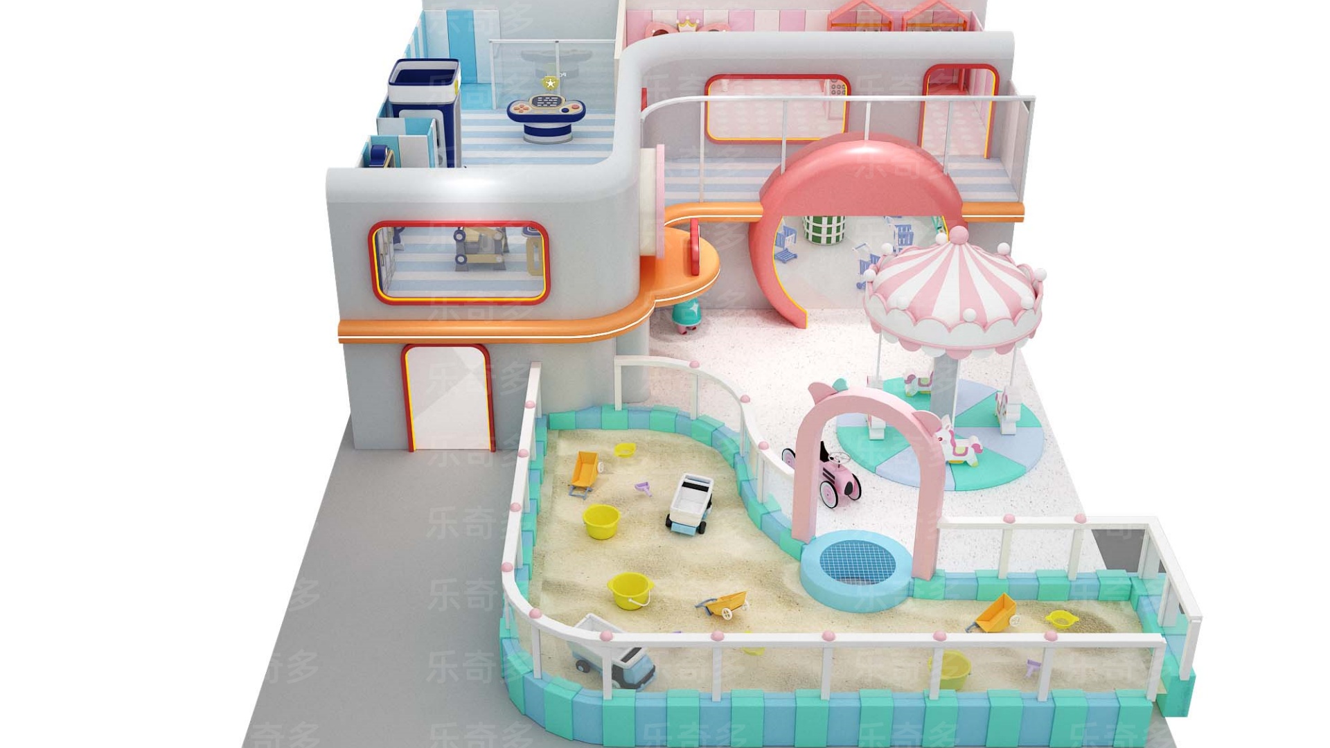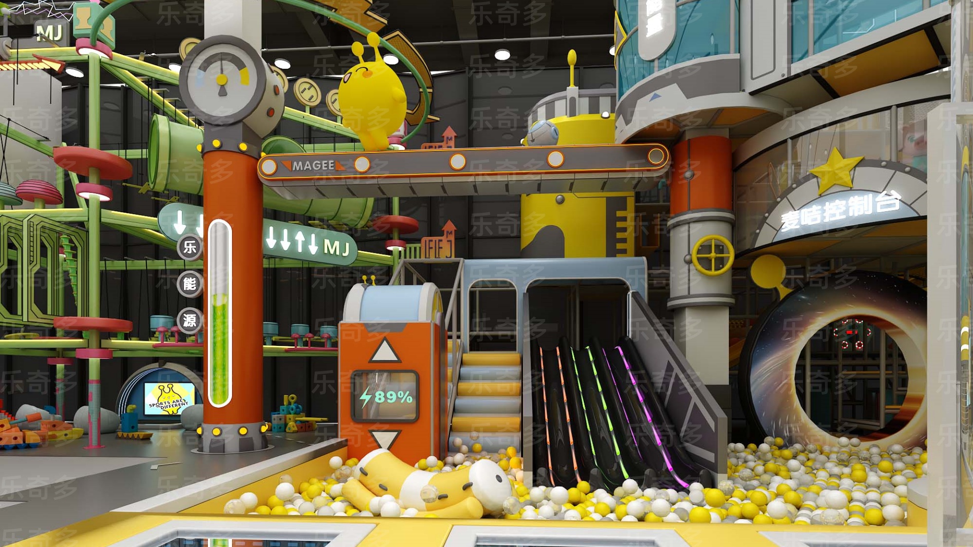 項(xiàng)目玩法:沙池探寶,海洋球池,波浪滑梯,互動(dòng)投影,組合滑梯,手工區(qū),彈跳迷宮、兒童小蹦床,角色扮演,公主屋,親子餐廳等。