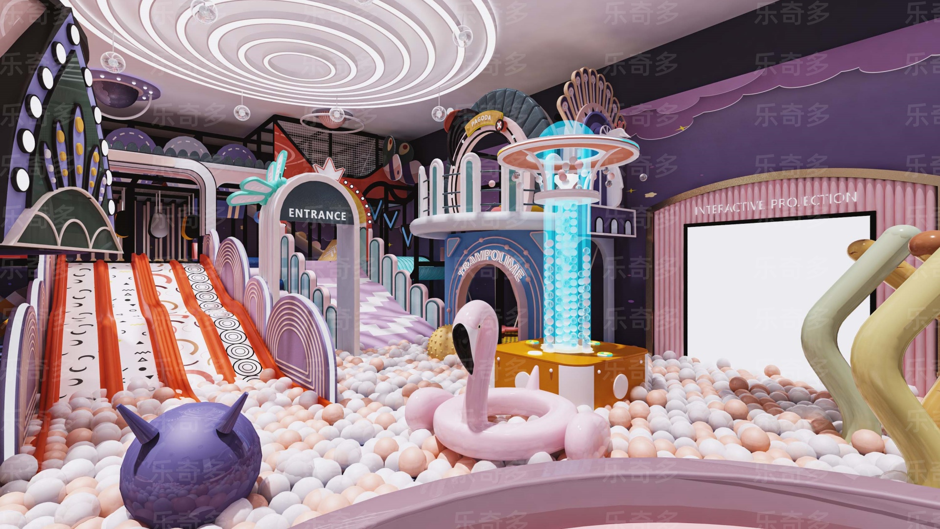項目玩法:沙池探寶,海洋球池,波浪滑梯,互動投影,組合滑梯,手工區(qū),彈跳迷宮、兒童小蹦床,角色扮演,公主屋,親子餐廳等。